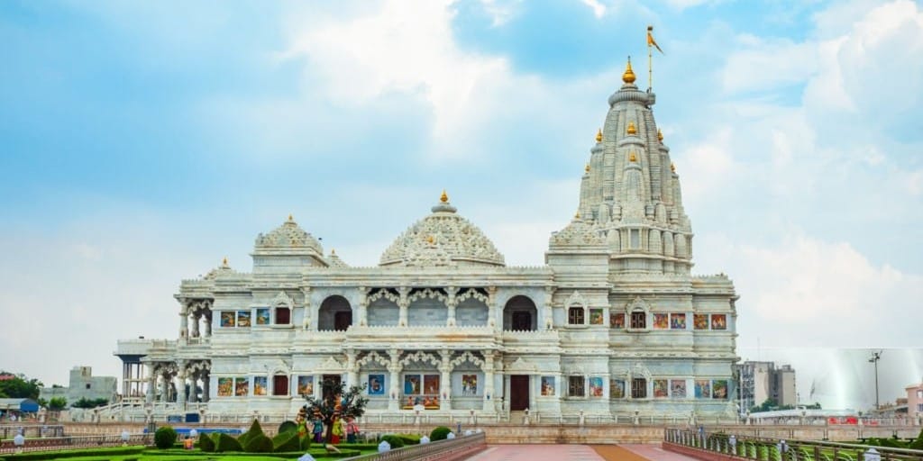 The main sanctum of Prem Mandir houses beautifully sculpted idols of Radha and Krishna. The temple’s interior is adorned with intricate paintings and designs, creating a serene and spiritually uplifting atmosphere for devotees and visitors.
